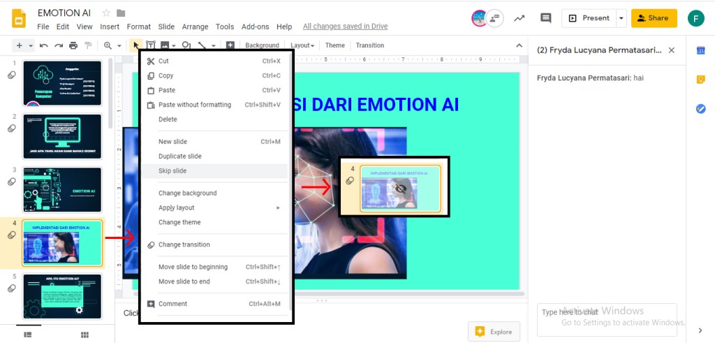 Fitur ini dapat digunakan untuk melewati slide presentasi tanpa perlu menghapus slide.