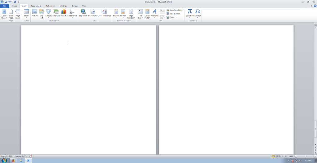 Caranya adalah dengan memilih submenu breaks > next page pada menu toolbar page layout. Kemudian akan menghasilkan halaman baru seperti di bawah ini.