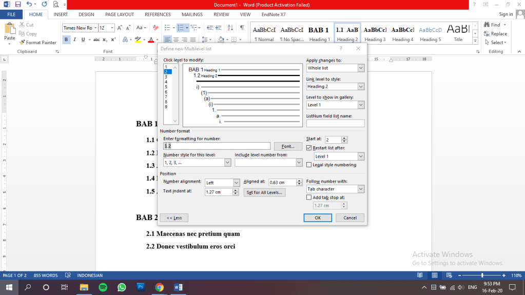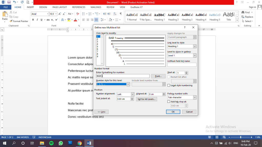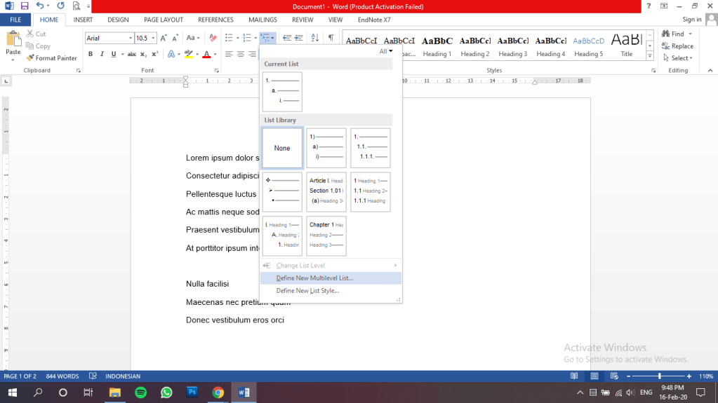 Pertama, pilih menu home > multilevel list > define new multilevel list seperti yang ditunjukkan pada gambar di bawah.