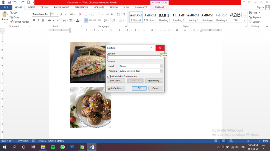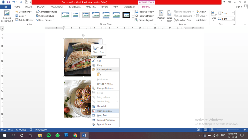 Caranya adalah dengan mengklik kanan pada gambar yang diinginkan, kemudian pilih insert caption. Hingga muncul kotak dialog seperti di bawah.