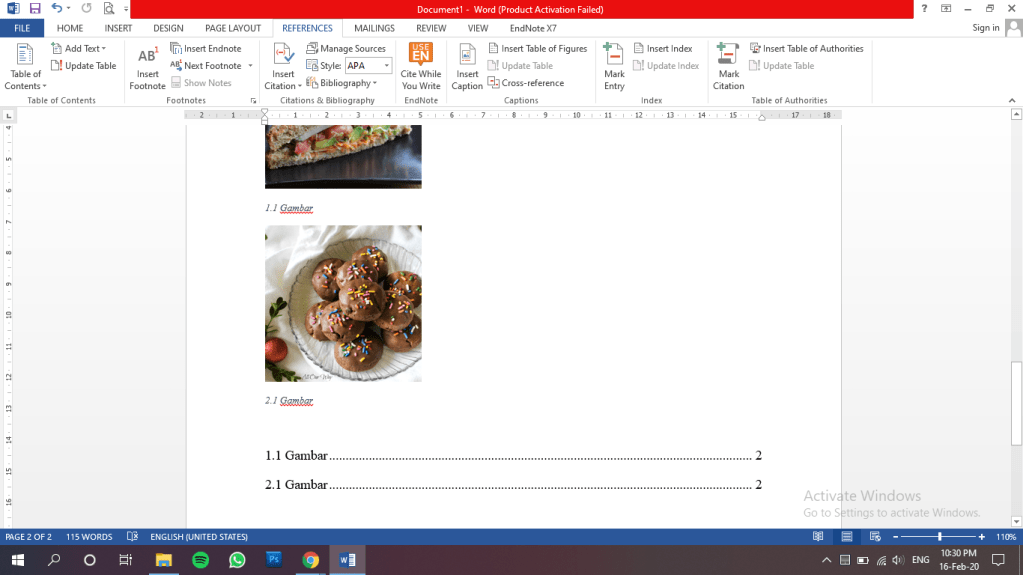 e. Membuat Daftar Gambar dan Daftar Tabel