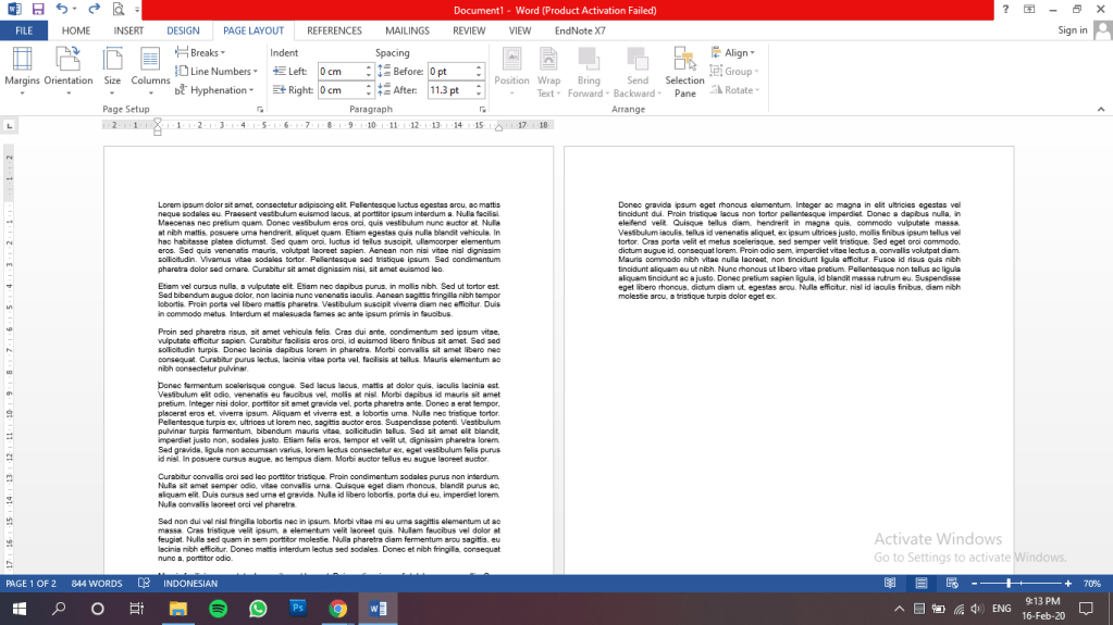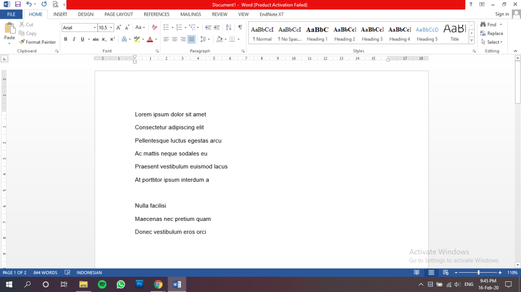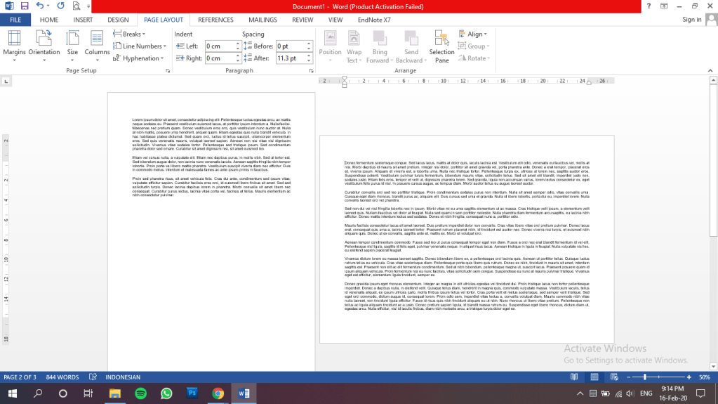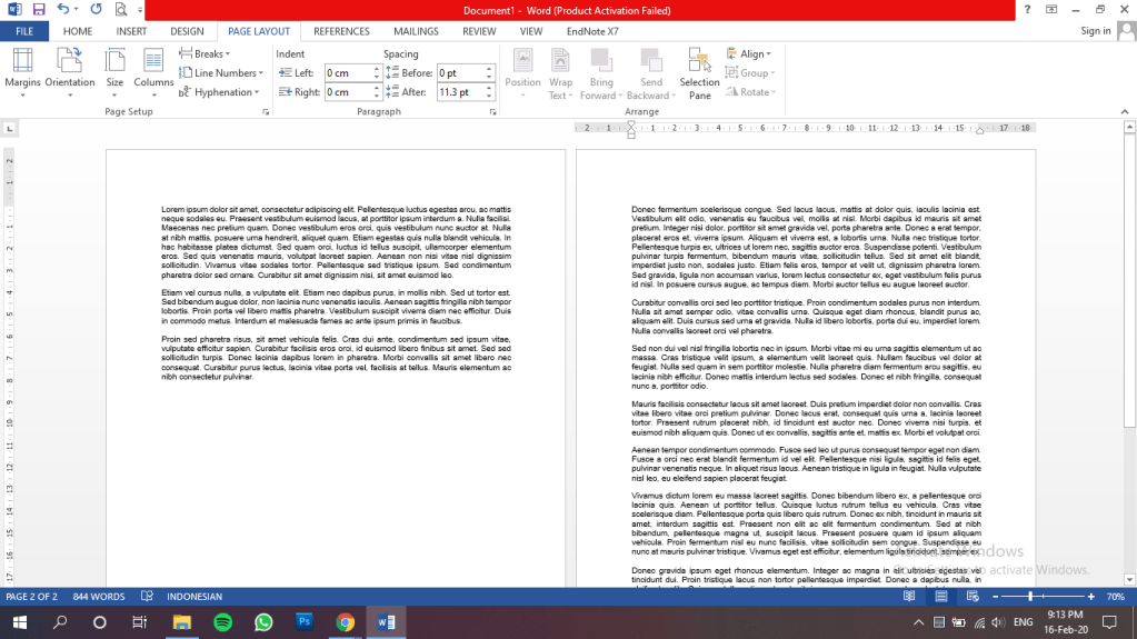 Pertama kita bakal nyobain yang ada di menu page layout nih. Sebelumnya coba ketik aja beberapa kalimat, contohnya kaya di bawah ini nih.