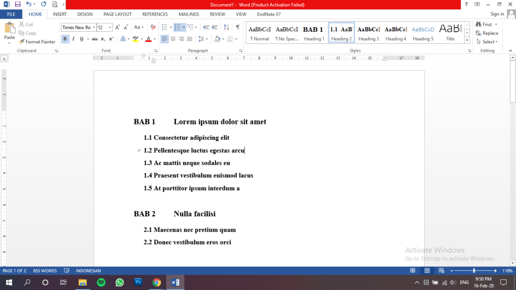 b. Membuat Bab, SubBab (Style formatting)