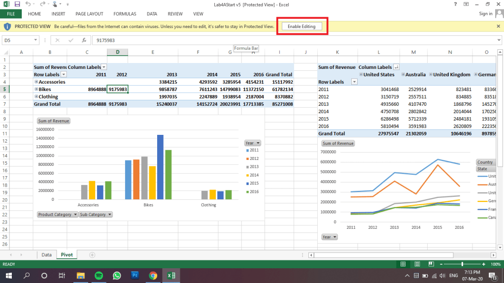 1. Download file pada course 4A atau download di sini, kemudian klik enable editing untuk memulai proses pengolahan data dengan fitur Slicer.